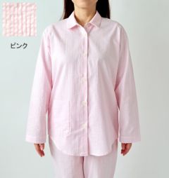 まるでシャツのようなストライプ柄。ズボンだけかえればゴミ出しはもちろん外出にも着ていけそうです!涼しい夏のルームウェアとしても