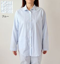 まるでシャツのようなストライプ柄。ズボンだけかえればゴミ出しはもちろん外出にも着ていけそうです!涼しい夏のルームウェアとしても