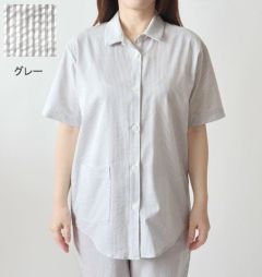 まるでシャツのようなストライプ柄。ズボンだけかえればゴミ出しはもちろん外出にも着ていけそうです!涼しい夏の半袖ルームウェアとしても。