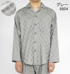 ブロックチェックサテンメンズパジャマ上下セット・長袖/前開き/開襟