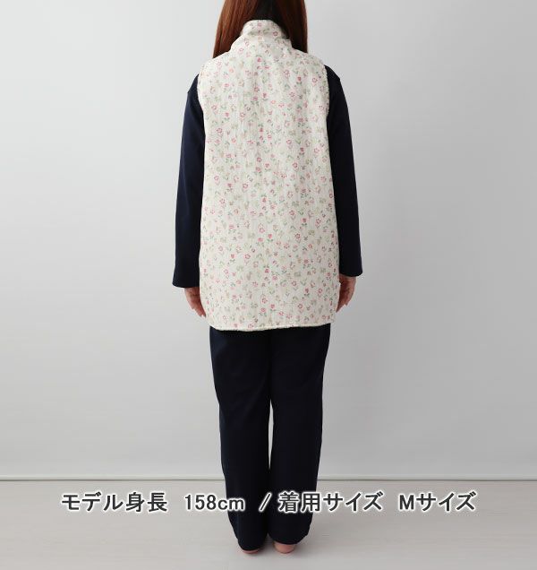 パジャマ、部屋着の上からあったか 花柄ダブルガーゼ-petit flora-レディース立ち襟ベスト・前開き 【オーダーメイド】
