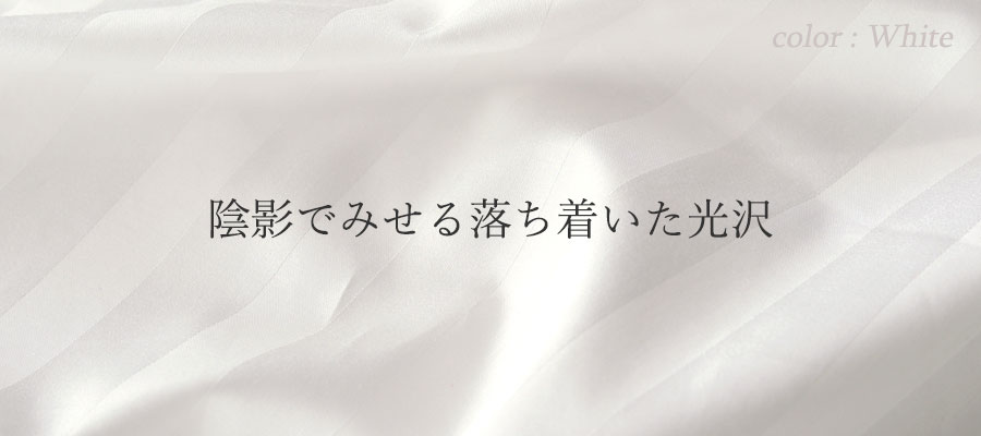 ラグジュアリーな雰囲気を演出するサテン織り(朱子織)は経糸と偉糸の交差する点をなるべく目立たぬように、さらにところどころを長く浮かせた織り方をすることで、平織などと比べ、光沢が出るので、ホテルのパジャマやリネンでよく使用さています。サテン織りとローン(平織)の幅をかえて、交互に織り上げたリズミカルなストライプは、光の加減によって複雑にみえ、大変高級感があります。シルクのようにギラギラしすぎない上品な光沢が魅力の綿サテンは、寝返りしやすく、パジャマにおすすめの素材です。