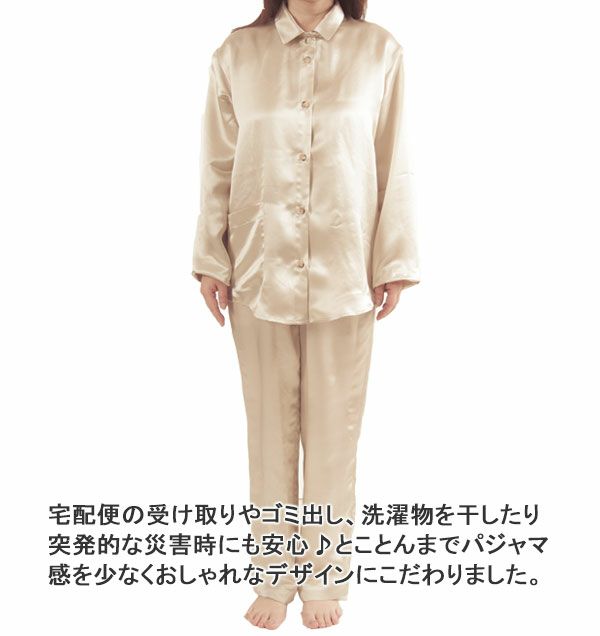 他の画像を見る 極上の光沢と肌触り シルクサテンレディースパジャマ上着単品・長袖/前開き/襟あり 【オーダーメイド】 春 秋 送料無料 シルク サテン 【税込価格】 ¥ 29,260 税込 シルク・絹100%のサテンパジャマ上着単品。レディースXS~5Lサイズまでご用意。極上の光沢と滑らかさ、19匁ならではの軽さ。さらにサンドウォッシュ加工でより柔らかな風合いに。吸湿性、吸水性、発散性に優れ、一年中快適です。毒素排出、美肌効果も。 (0) 詳細を見る お気に入りに登録する