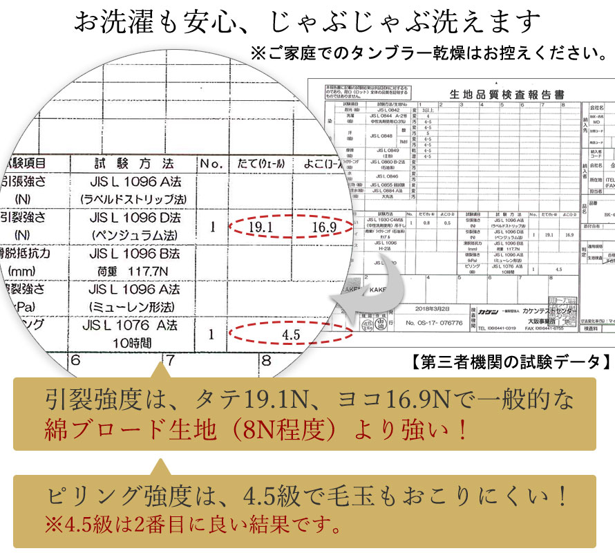 - 洗濯機でジャブジャブ洗える、優れた耐久性
