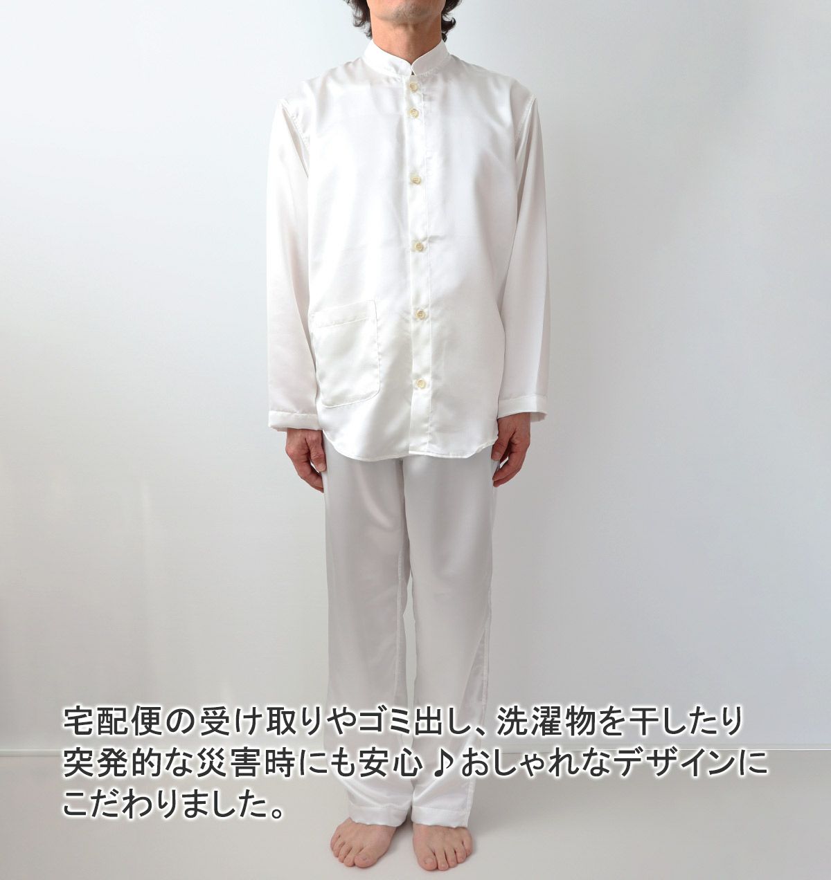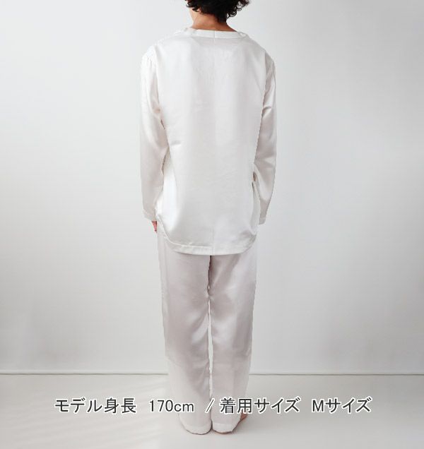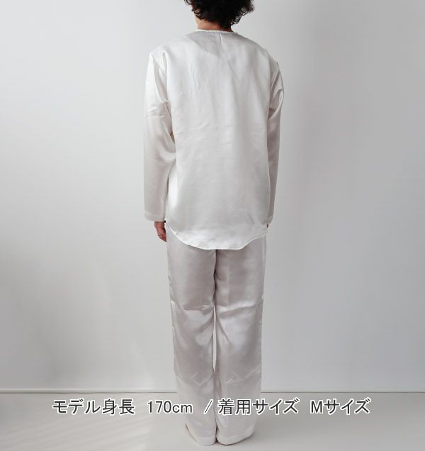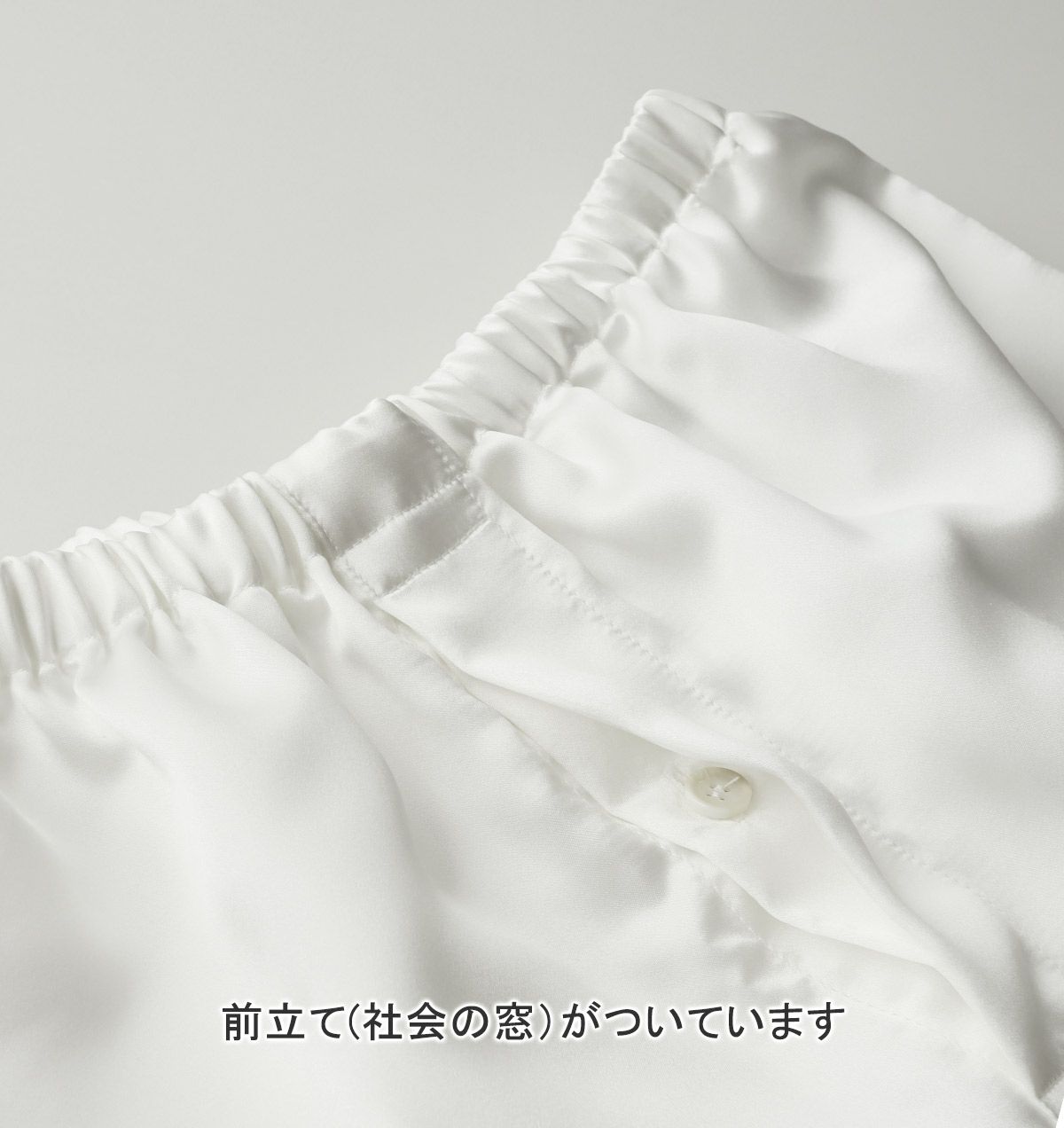 19匁で非常に軽く夏涼しく冬あたたかい機能性とすばらしいドレープ性と光沢をあわせ持つこの川俣シルクは、極上の眠りを誘います。「これぞシルク!」という極上のつるつるすべすべの肌触りの川俣シルクサテンパジャマです