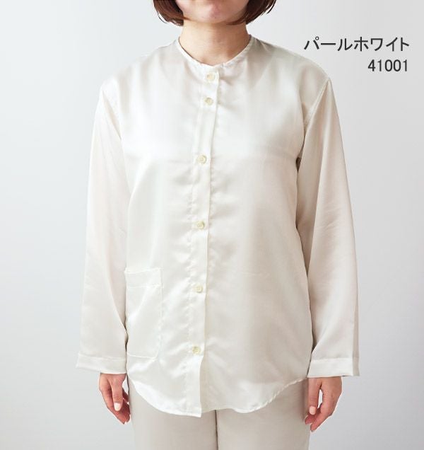川俣シルクサテンレディースパジャマ上着単品・長袖/前開き/襟なし