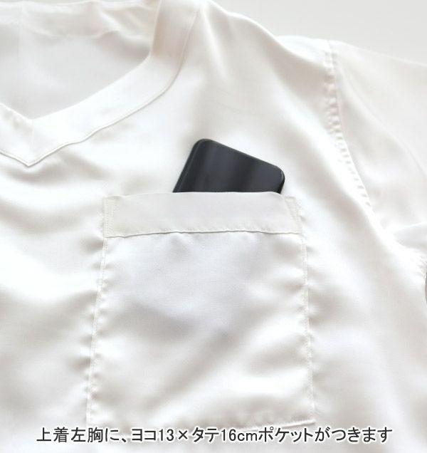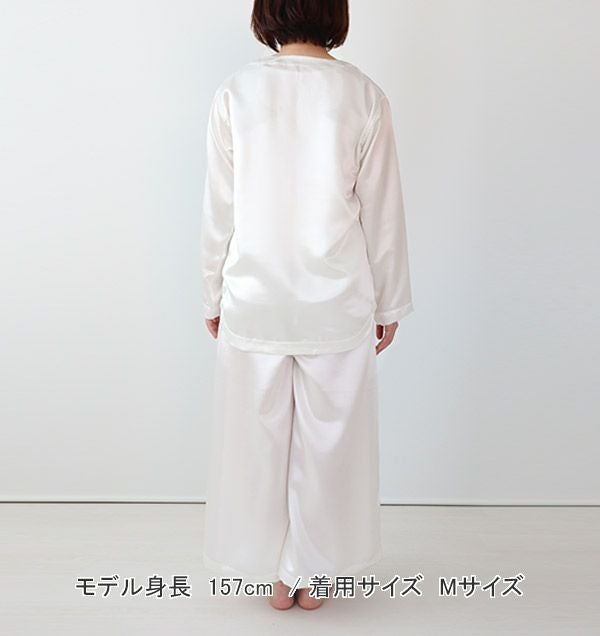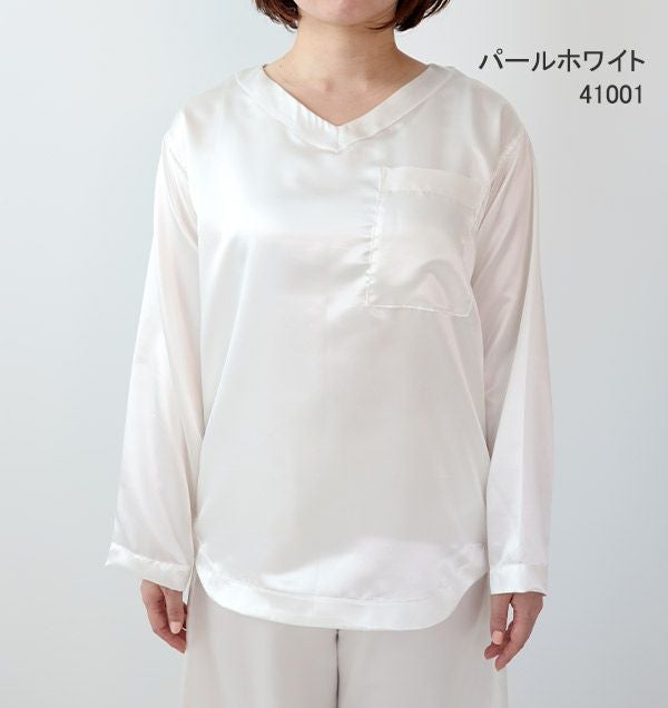 川俣シルクサテンレディースパジャマ上着単品・長袖/かぶり/Vネック