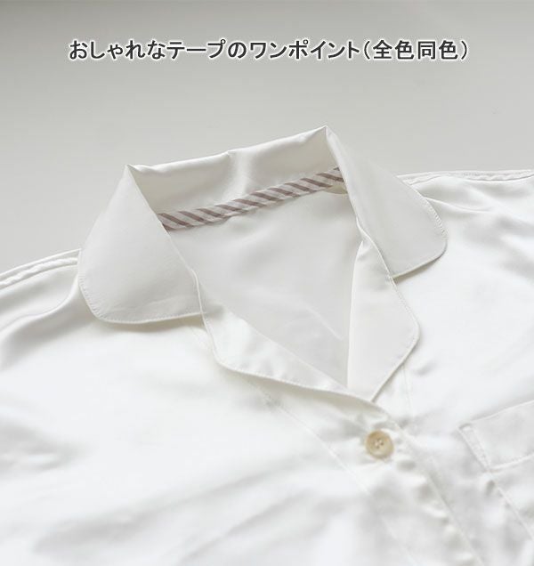 川俣シルクサテンレディースパジャマ上着単品・長袖/前開き/開襟