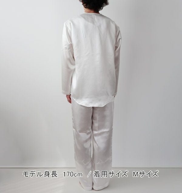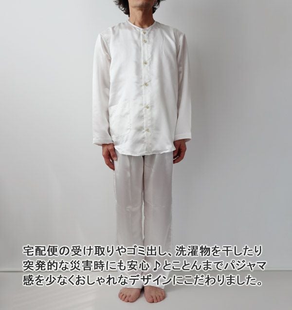 川俣シルクサテンメンズパジャマ上着単品・長袖/前開き/襟なし