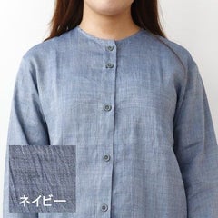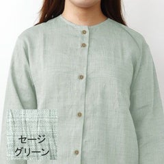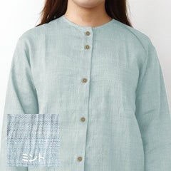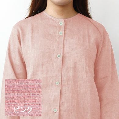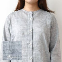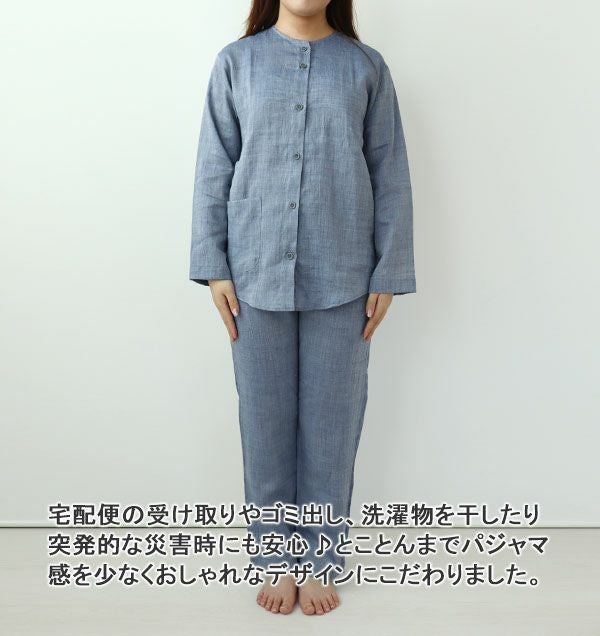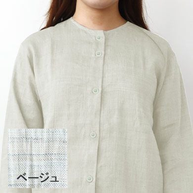 近江ちぢみ麻レディースパジャマ上下セット・長袖/前開き/襟なし