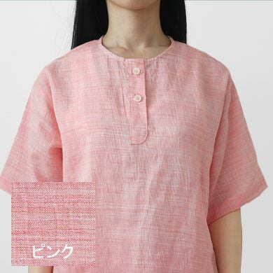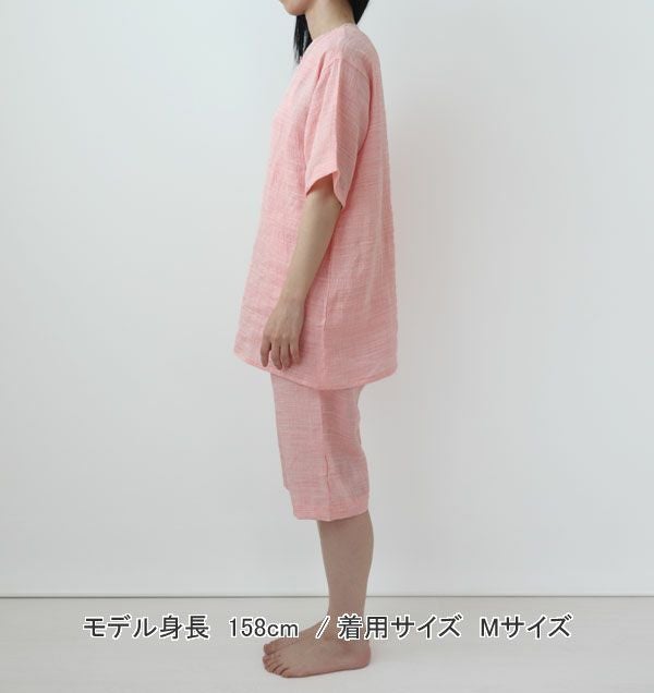 近江ちぢみ麻レディースパジャマ上下セット・半袖/かぶり/襟なし