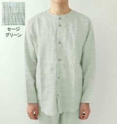 近江ちぢみ麻メンズパジャマ上下セット・長袖/前開き/襟なし