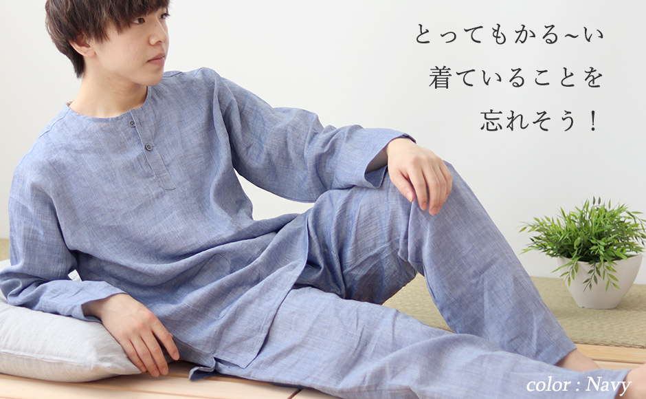 商品名 60先染めフランスリネンメンズパジャマ |
