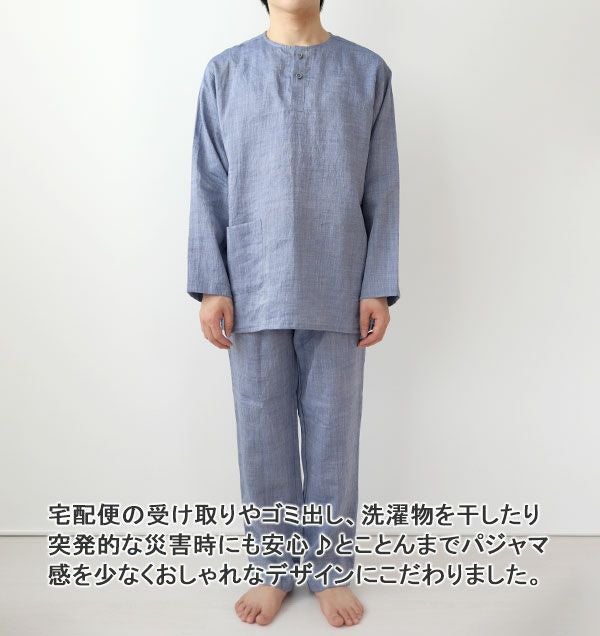 近江ちぢみ麻メンズパジャマ 上下セット・長袖/かぶり/ヘンリーネック