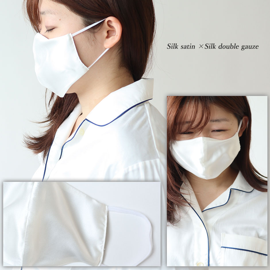 洗える シルクダブルガーゼ×シルクサテンマスク 日本製 シルク100%