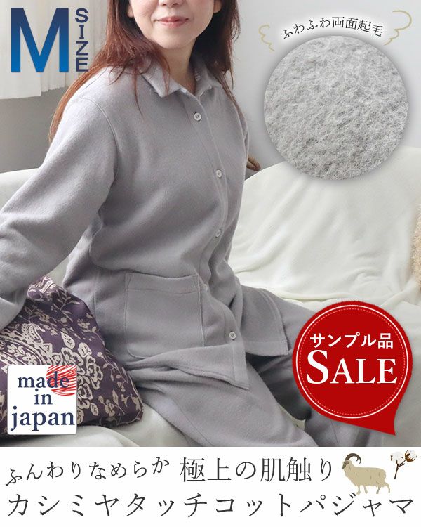 カシミヤタッチコットレディースパジャマ 上下セット・長袖/前開き/襟あり