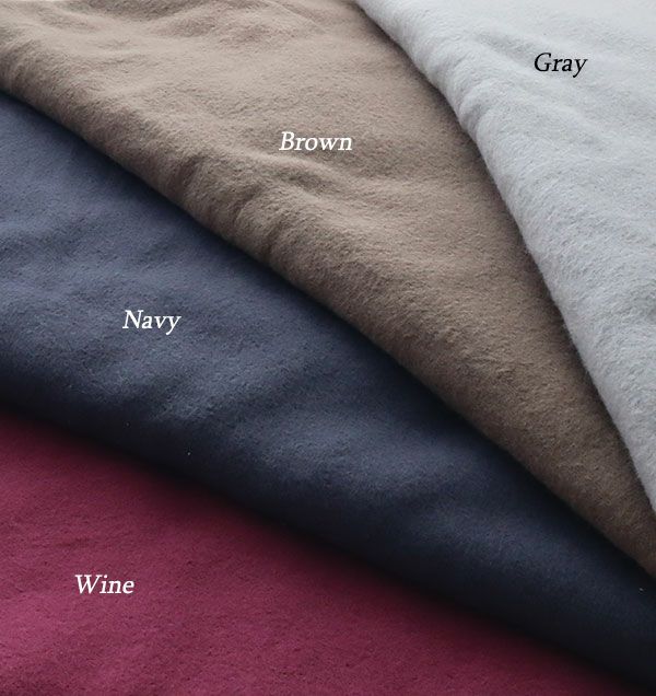 パイルニットの両面を起毛し、わた毛のようなふわふわした表情のある生地になりました。しなやかで肌にそっとよりそうようなフィット感と寝返りしやすい伸縮性を感じて頂けます。軽くて柔らかくあったかい、素肌にそのまま着ても 全くストレスを感じないくらい・・・。まるでカシミヤのように滑らかでふんわりとした肌触りが魅力です。