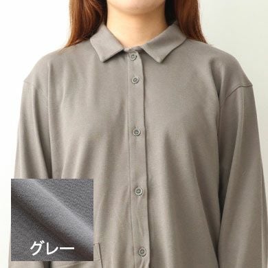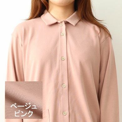 オーガニックコットンスムースニットレディースパジャマ 上下セット・長袖/前開き/襟あり
