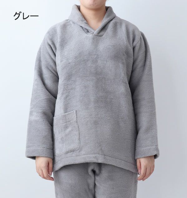 コットンフリースレディースパジャマ上下セット・長袖/かぶり/ショールカラー