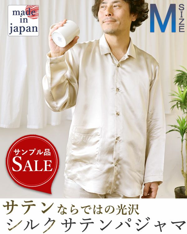 シルクサテンメンズパジャマ 上下セット・長袖/前開き/襟あり