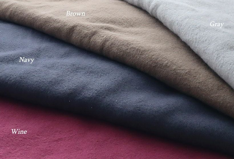 パイルニットの両面を起毛し、わた毛のようなふわふわした表情のある生地になりました。しなやかで肌にそっとよりそうようなフィット感と寝返りしやすい伸縮性を感じて頂けます。軽くて柔らかくあったかい、素肌にそのまま着ても 全くストレスを感じないくらい・・・。まるでカシミヤのように滑らかでふんわりとした肌触りが魅力です。