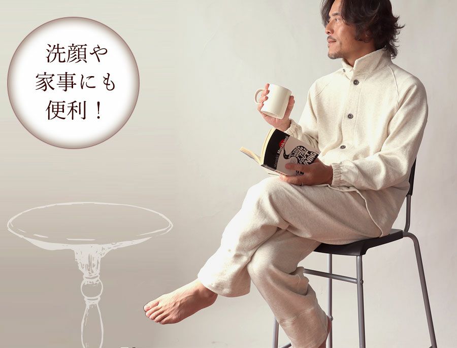ふわふわした肌触りが気持ち良い大人気の裏起毛スウェットのメンズパジャマです。今までフリースを使われた方にもおすすめの蒸れにくい綿100%素材で、首元、手首、足元が暖かい仕様だから朝まで快適にお過ごしいただけます。