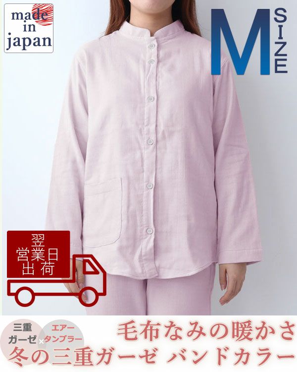 毛布なみの暖かさ!冬も使えるガーゼ 【翌営業日出荷】3重ガーゼレディースレディースパジャマ上下セット・長袖/前開き/バンドカラー 【ピンク/Mサイズ】