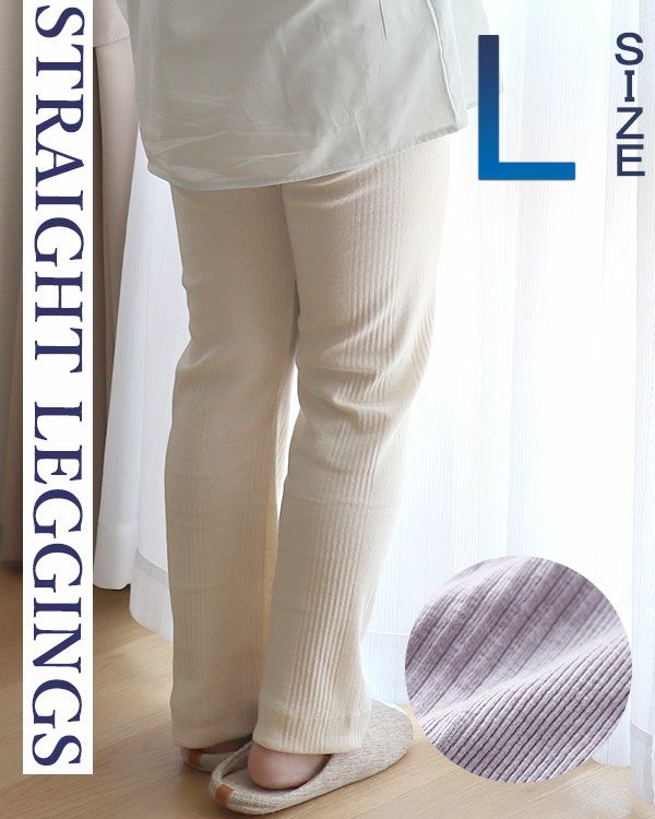 ナチュラルな風合いのコットンリブニット 【翌営業日出荷】リラックスコットンテレコレディースレギンスパンツ/長ズボン 【アッシュラヴェンダー/Lサイズ】