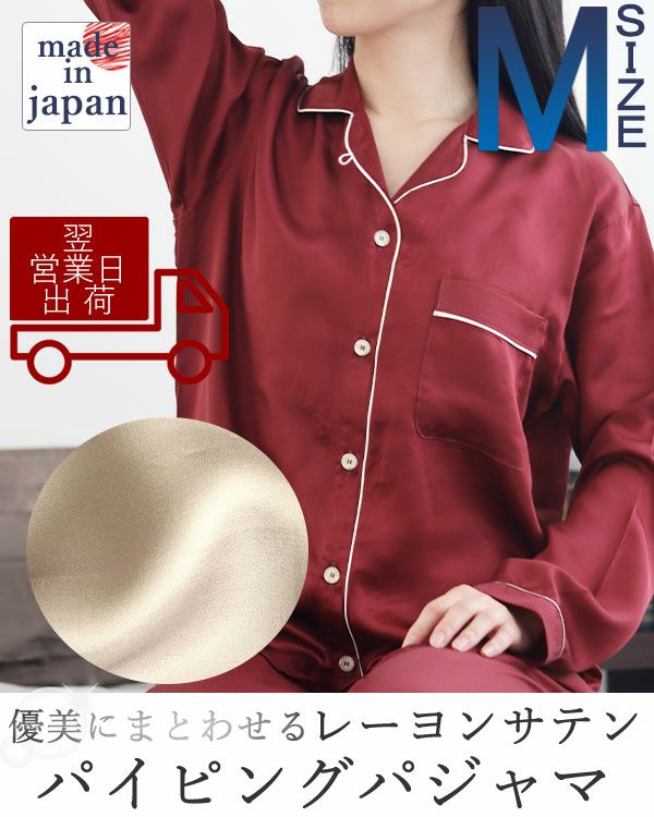 レーヨンサテンレディースパジャマ上下セット・長袖/前開き/開襟パイピング