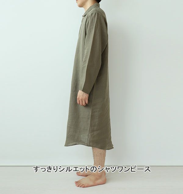 洗い加工のフランスリネンで優雅な夏を やわらかるいリネンメンズスリーパー・長袖/前開き/襟あり 【オーダーメイド】