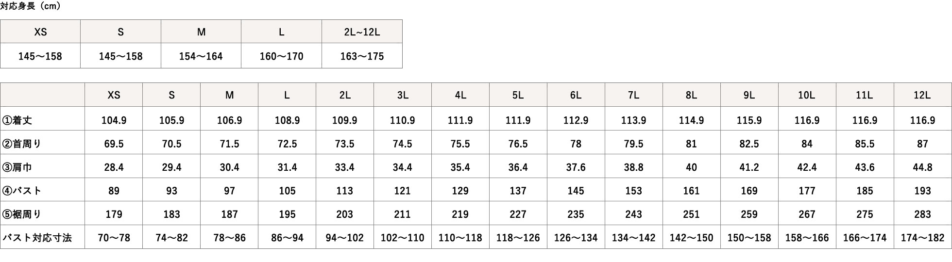 1cm単位で丈をかえられます(未選択の場合はサイズ表どおり)