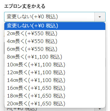 1cm単位で丈をかえられます(未選択の場合はサイズ表どおり)