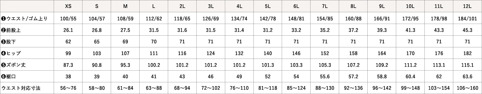 1cm単位で股下をかえられます(未選択の場合はサイズ表どおり)