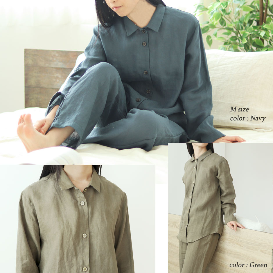 シャツのような上品なデザインで、柔らかく軽いフランスリネンパジャマは一日中着ていたくなるほど快適でルームウェアにもおすすめ。さらに汗をかいてもべたつかず、さらさらな着心地でクーラーをつけて過ごす際にも冷え過ぎない前開きの長袖長ズボンで夏にも安心なぴったりな一枚です。