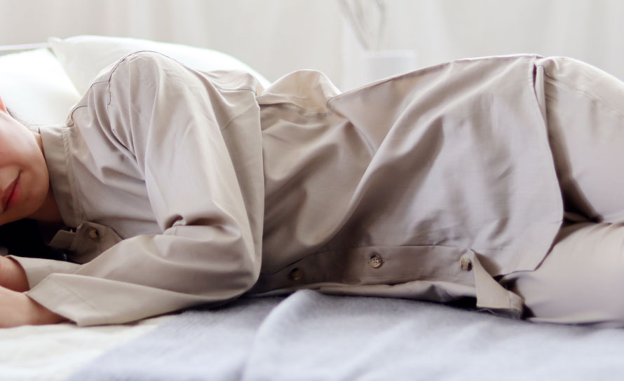 就寝中は締め付け感が少なくお腹にあたる部分もやさしい感触のものがおすすめです。当店で使用しているBBワッフル®ゴムは、ずれにくいのにきつすぎない、パジャマに最適なお腹にやさしいソフトゴムです。