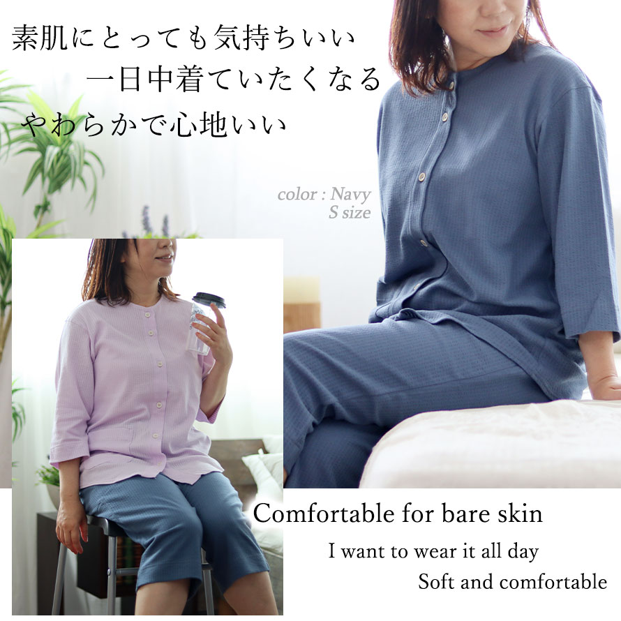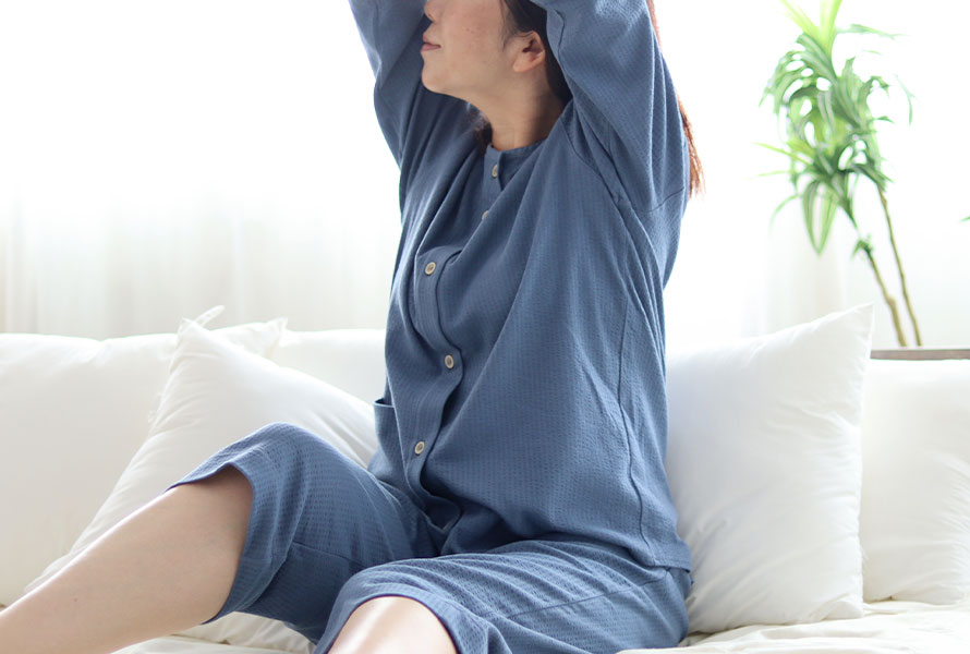 1晩に平均20~30回の寝返りをするといわれています。 身体の一部に負担をかけない為にも、血行不良を防ぐ為にも必要です。締め付け感がなく、体を動かしやすい無理のないゆったりしたデザインです。