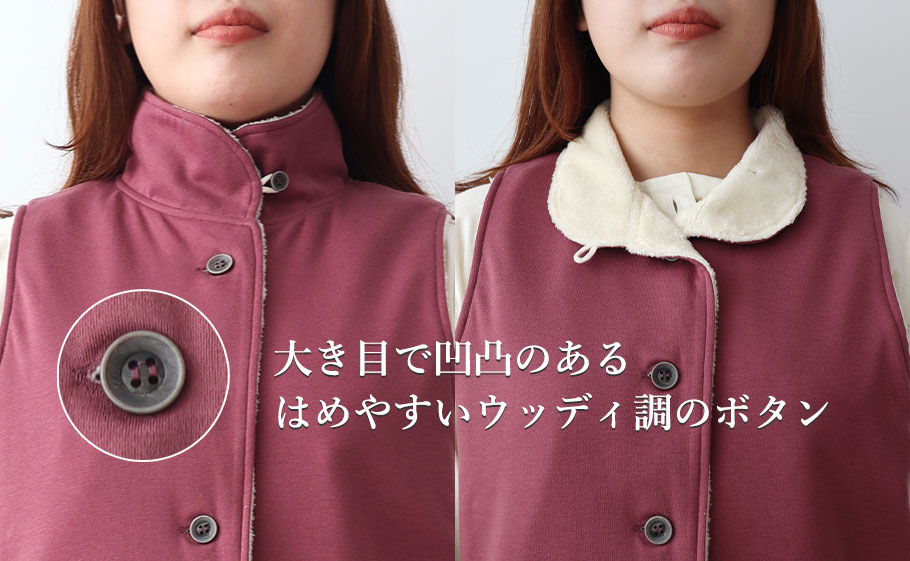 手首が冷えるのが苦手な方や朝、パジャマのまま家事や洗顔などをされる方に。また少し大きめサイズを着たい方にも手首がとめられ便利です。