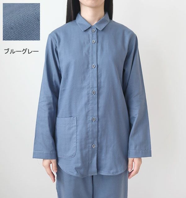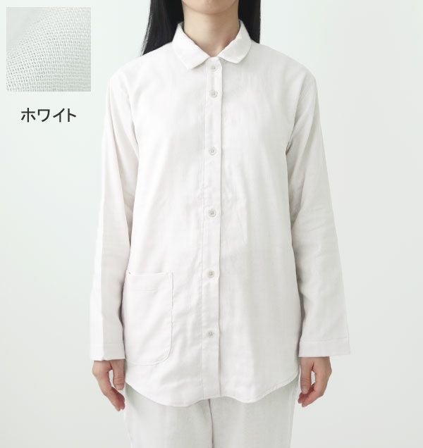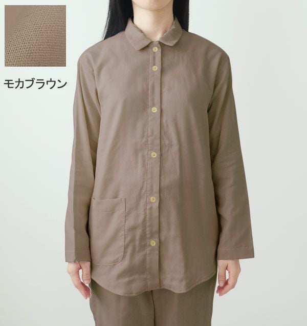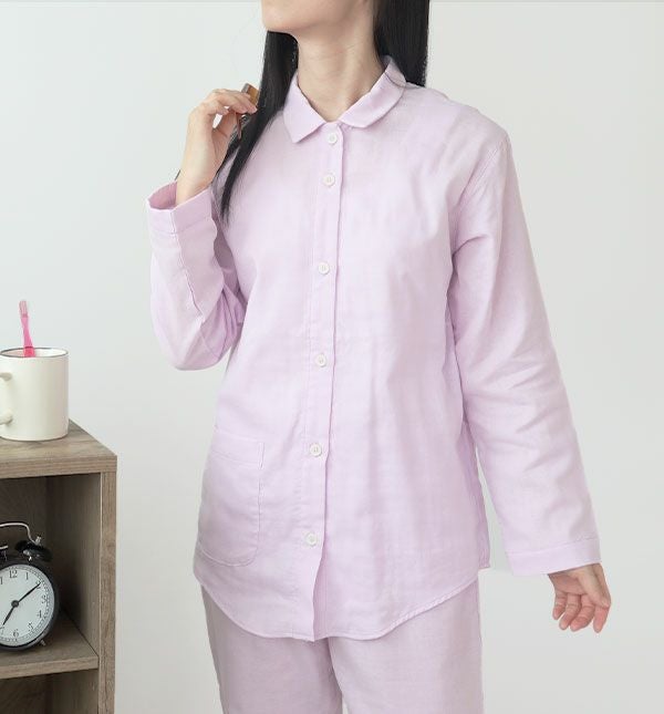 抗菌防臭ダブルガーゼレディースパジャマ上下セット・長袖/前開き/襟あり