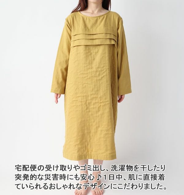 締め付け感なく長時間着ていてもストレスなくくつろげる、ゆったりかわいいデザインのワンピース。家にいるときくらいは、柔かいものに包まれてほしい。