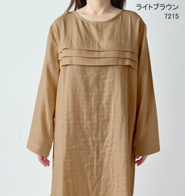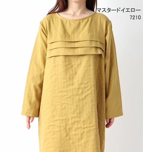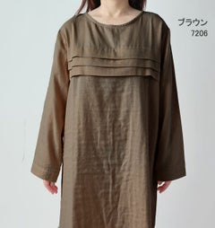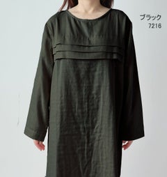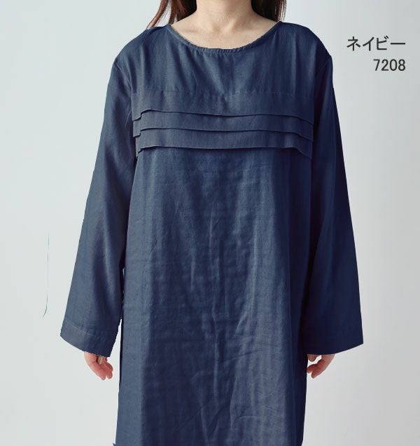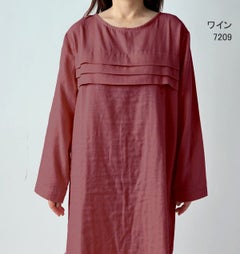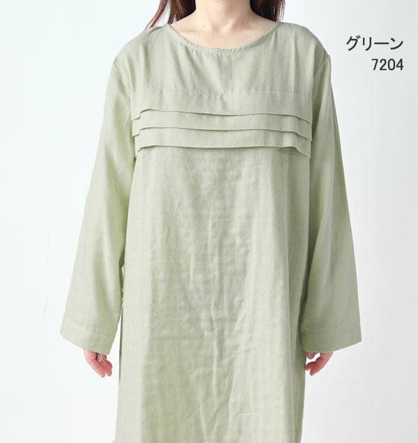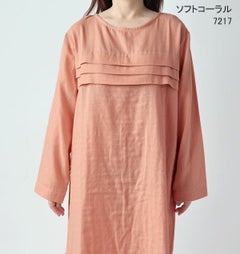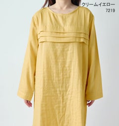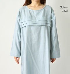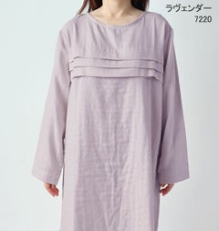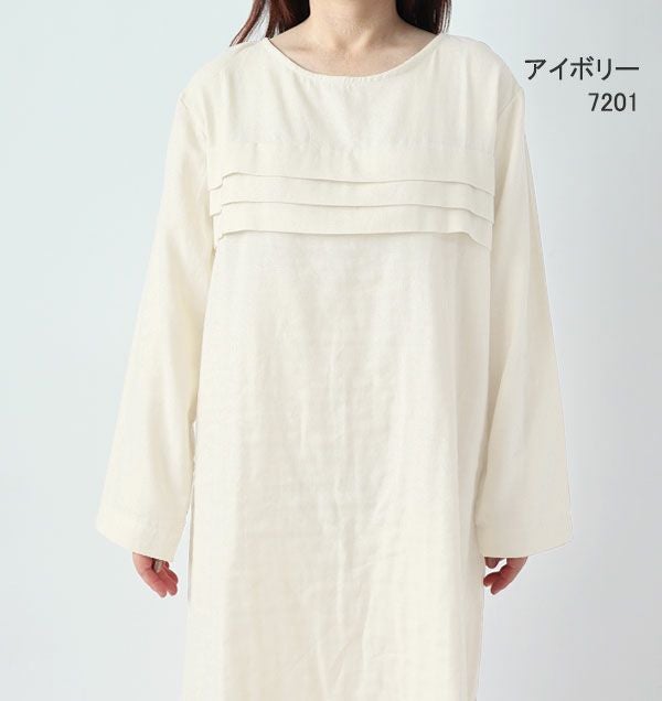ふわふわ柔らかダブルガーゼレディースワンピース・長袖/かぶり/ラウンドネック