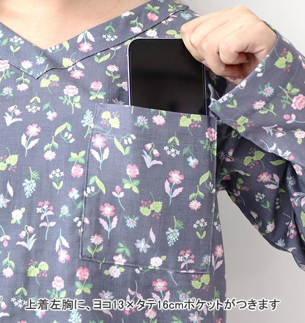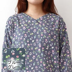 花柄ダブルガーゼ-petit flora-レディースパジャマ上下セット・長袖/かぶり/Vネック/ガウチョパンツ/八分丈