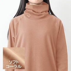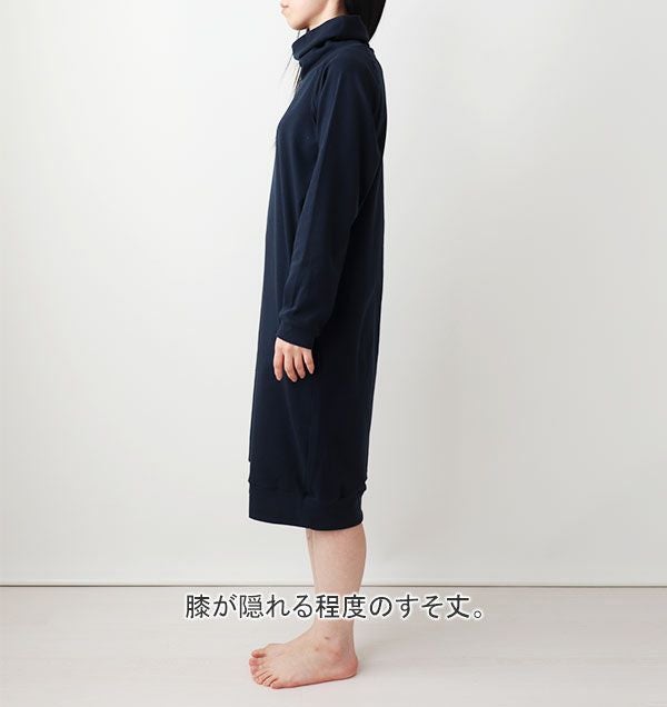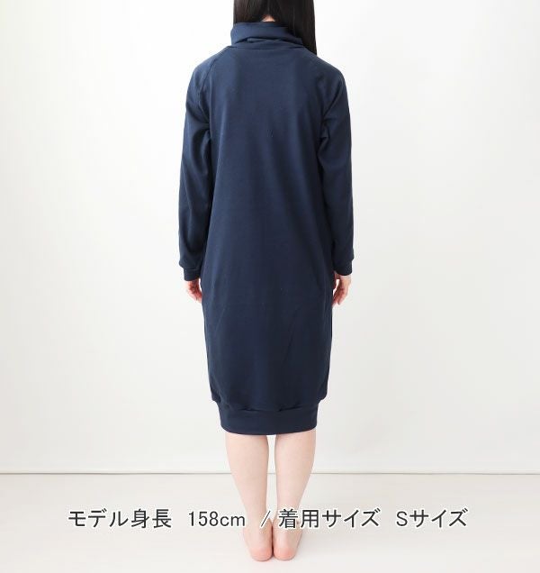 コットンムースレディースワンピース・長袖/かぶり/タートルネック