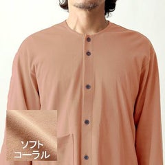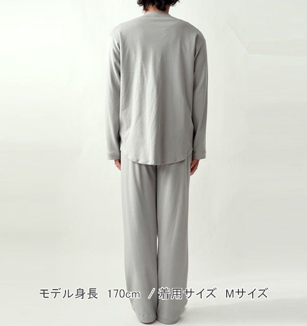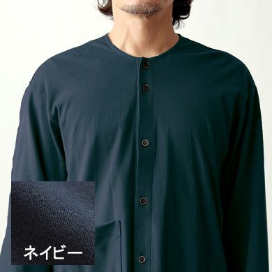 コットンムースメンズ入院パジャマ 上下セット・長袖/前開き/襟なし