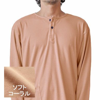 コットンムースメンズパジャマ 上下セット・長袖/かぶり/襟なし