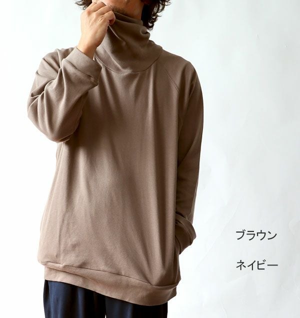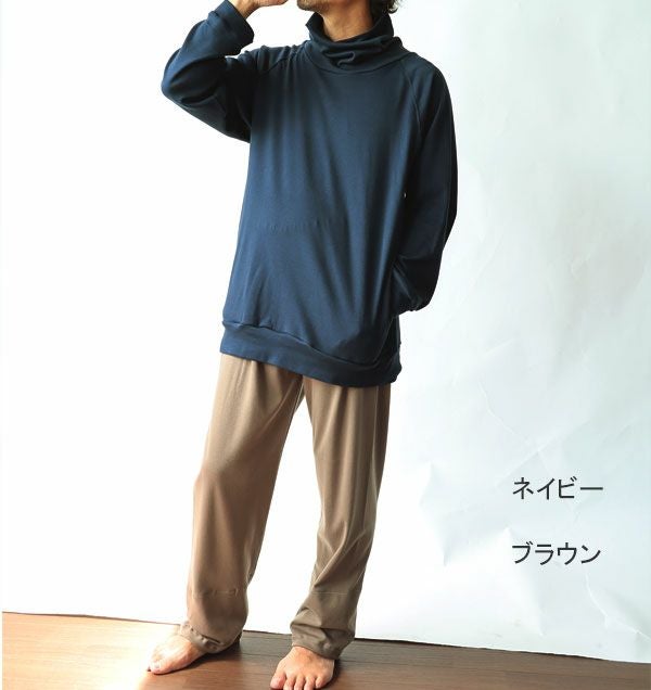コットンムースメンズパジャマ 上下セット・長袖/かぶり/タートルネック