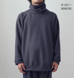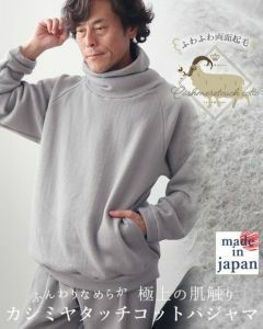 なめらかでふんわり、やさしい肌触り 【サンプル品につき40%オフ】カシミヤタッチコットメンズパジャマ上下セット・長袖/かぶり/タートルネック 【アウトレット】