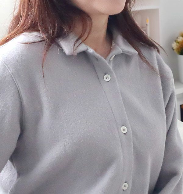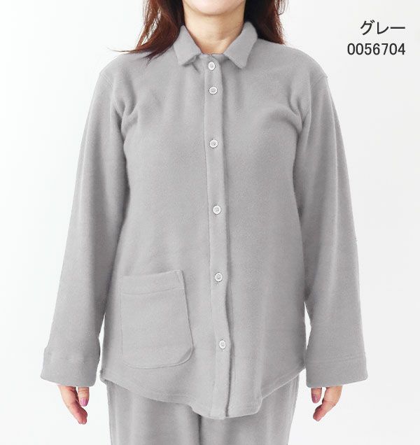 なめらかでふんわり、やさしい肌触り 【サンプル品につき40%オフ】カシミヤタッチコットレディースパジャマ上下セット・長袖/前開き/襟あり 【アウトレット】