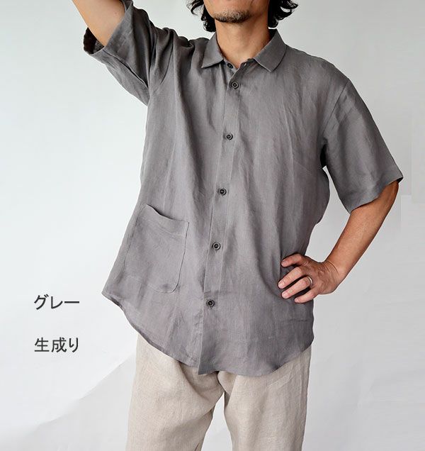 夏に最適、柔らかく軽いリネンの襟ありパジャマ。メンズXS~12L。半袖なので、暑がりな方におすすめです。クールクラッシュという洗いざらし加工で、麻とは思えない柔らかさ!細い60番手糸使用で、 他の麻と比べ30%も軽く、抜群の涼感です。