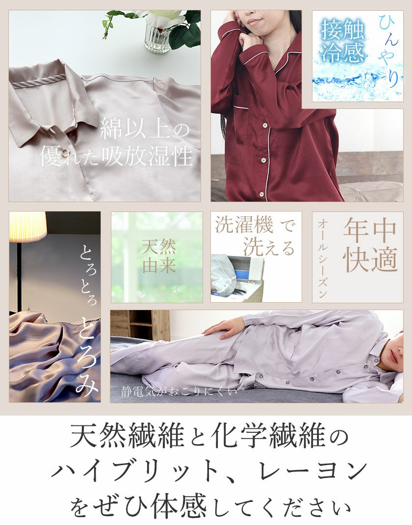 艶やかな光沢が上品なレーヨンサテンメンズ開襟パジャマの上下セットです!おしゃれなパイピング入りでホテルライクな高級感のある雰囲気を楽しんでいただけます!綿以上の抜群の吸放湿性で、就寝中も日中も快適な着心地で部屋着にもおすすめです!
