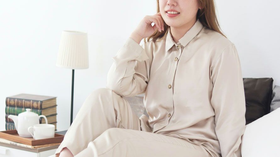和晒製法で特別ふっくら柔らかなダブルガーゼで作ったヘンリーネックのパジャマ。レディースXS~5L。ダブルガーゼならではの適度な保温性で春・秋はもちろん一年中、快眠をサポートします。さらに袖丈・着丈・ズボン丈の長さを調整できる簡単セミオーダーサービスが可能